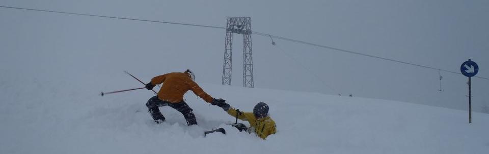 "Pojďte se rychle všichni podívat! Vidím kus modrého nebe! Ale dělejte, kámo vole, poáč už to končí!" Ač jsem tuhle větu hodil hned ráno při neutuchajících lavinových salvách (teď už je bereme jako příjemný místní kolorit:-), o poslední modré z nebe dneska rozhodně nešlo. Ba naopak! Kydání nad ránem překvapivě ustalo a s protaženými ústy všichni zíráme na okolní hory a fascinující vrsty sněhu, ze kterých místo komínů pod našimi okny (tam, kde jen zhruba tušíme domy, poáč z typické šikminy zůstal pravidelný klobouk...) spíše zírá podivná čoudící díra ze země. Že bychom konečně viděli onen profláklý vstup do pekla? Sakra, že jich tady ale je, kámo vole!
