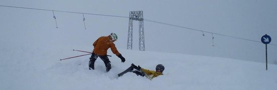 Jako povedená taškařice se jevil nápad jít se pokusit dohledat na místo činu včera ztracené Radčino topení do přezkáčů. Mnoho sněhu naštěstí přes noc nenapadlo a odhodlanost Barase znovu pomoci vyvolala nadšenou zvědavost i u zbývajících členů výpravy. Natěšenost rostla. Zvědavost došla samozřejmě naplnění neboť v místě Radčina dopadu se nacházela velmi slušná vrstva sněhu. Příčina nastalých opičáren tady byla a bránice nás přihlížejících si přišly na své. Topení se pochopitelně nenalezlo a možná logickou "odměnou" za dojezd až k dolní stanici areálu byla přímo nechutná fronta na čtyřkabinku. Půl jedenáctá dopolední je u parkoviště vážně opruz.