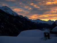 Vlastně je podivuhodné, že na třetí (tedy krizový) den jsme si nečekaně naplánovali nejdelší lyžbu. Sníh byl těžký a když připočteme, že jsme snad všichni vyměnili svou výzbroj (máme tady jedenáct lyží). Nápor či pořádnou nálož jsme nakonec s úspěchem vydrželi na svazích až do půl čtvrté. Závěrečný sjezd k parkovišti - naše oblíbená disciplína "mezi kuželkami" - nám (nebo snad jen mně?) bral i poslední zbytky sil. Upadli jsme únavou v podstatě hned v autě. Večerní odměnou nám byl fantastický západ slunce. Že by příslib blížících se světlých zítřků? Zbytek večera byl pochopitelně stráven karbanem. Nová Charlieho karetní hra se vážně uchytila. Vypadá to, že i dnes bude Baras rozesílat nad ránem milostné esemesky neb se mu opět "daří":-)