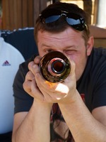 Trapná část pánského ansámblu se z opevněného areálu ke gáblíku nechala odvézt autem, které si původně přijelo pouze pro Doktora. Méně drzejší (a nutno říct, že výrazně menší) skupina je došla a již společně jsme šli vyžrat místní picérku (což mi připomíná: pamatujete na CRC počítač vloni???). S úspěchem. To už dámská část šla zpět na základnu a pánové se tak nějak roztřásli do povícero podskupin. Cosi se odebralo na bazén (bez úspěchu), cosi nazpátek (bez úspěchu), abychom se (úspěšně) shledali až večer u tepla rodinného krbu. Sladké mámení (právě jsem podvědomě zaznamenal, že Doktor už nény...), krásně krvavý západ slunce, pařba, fotky kostel (i uvnitř), ženy, zpěv a víno. Každý podle svých možností, každý podle svých potřeb. S dovolením si dovolím celý ten večer od pátku do neděli roztřídit podle zachycených okamžiků. Především proto, že foťák byl vyjímečně milostivý a také proto, že (podle téhož) byla sobota mimořádně sportovní. A vo tom to je!