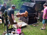 A chata U Karloj tradičně nezklamala! Všude kolem běhala menší i větší drobotina (možná tady bylo dětí více než dospělých), kolem selátka běhal oslavenec Pepa, Lenča Delegace se tradičně plotnila v kuchyni a vyráběla vynikající saláty, mno a my zbývající dospělí řešili ty zásadní světové otázky, jak už to na Pecce bývává:-))) S Vendelajnovcema jsme přijeli akorát k hotovému, jen jediný průser byl, že došla Plznička. Naštěstí řidičů bylo dost a přestože první mise do Tábora nevyšla, autem už byli úspěšnější a přivezli Broučka. I přes počáteční ostych nás mile překvapil.