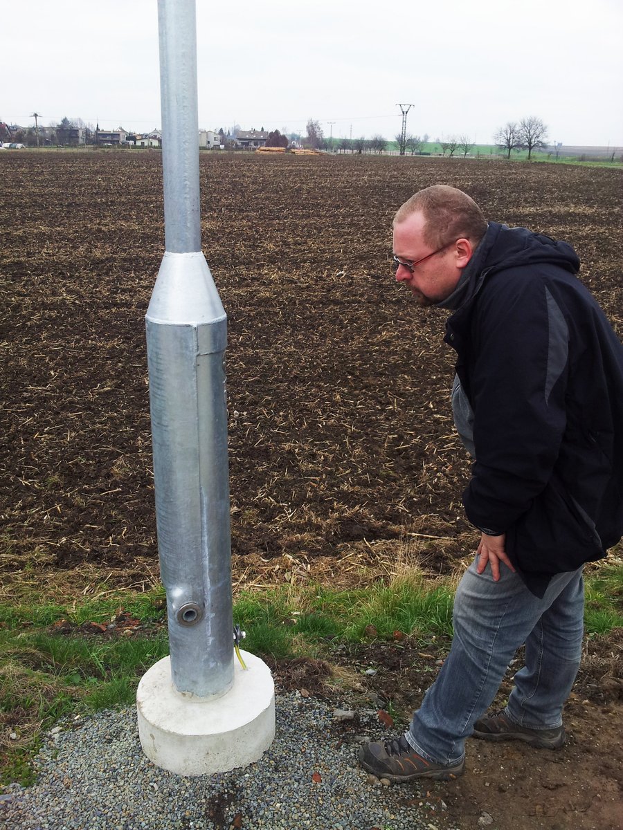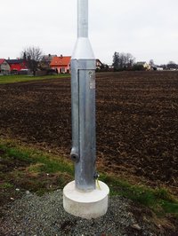 Spouštěcí bod jsem našel podle dokumentace na správném místě a cestou zpátky byl čas se i porozhlédnout. Našel jsem hned dalšího adepta (totiž přejezd) na nové zabezpečení na zastávce v Malých Hošticích, kudy přes koleje vede i cyklostezka mezi Opavou a Lojzovem. Jenže tenkrát v parnu letošního června při cestě z Budišova domů jsem jej nijak zvlášť nevnímal. Zatím je zmíněný přejezd chráněn pouze kříži. Na nedaleké zastávce mne pak překvapila zajímavá konstrukce osvětlovacích lamp, jejichž sloupy se dají pomocí elegantního patentu metr nad zemí "zlomit" a jednoduše vyměnit třeba žárovku.