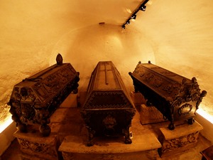 katedrálu Svatého Václava ... mám zvenku moc rád. Krásný příklad majestátní štíhlé novogotiky. Opět jedna z těžko zaměnitelných olomouckých staveb. Ale uvnitř, nezlobte se na mne, se mi skoro vůbec nelíbí. Takový až příliš načančaný romantismus. Jakoby hvězdná obloha má návštěvníka především uchvátit. Mnohem zajímavější byla krypta s ostatky několika zdejších arcibiskubů a pak pod oltářem probíhající koncert.