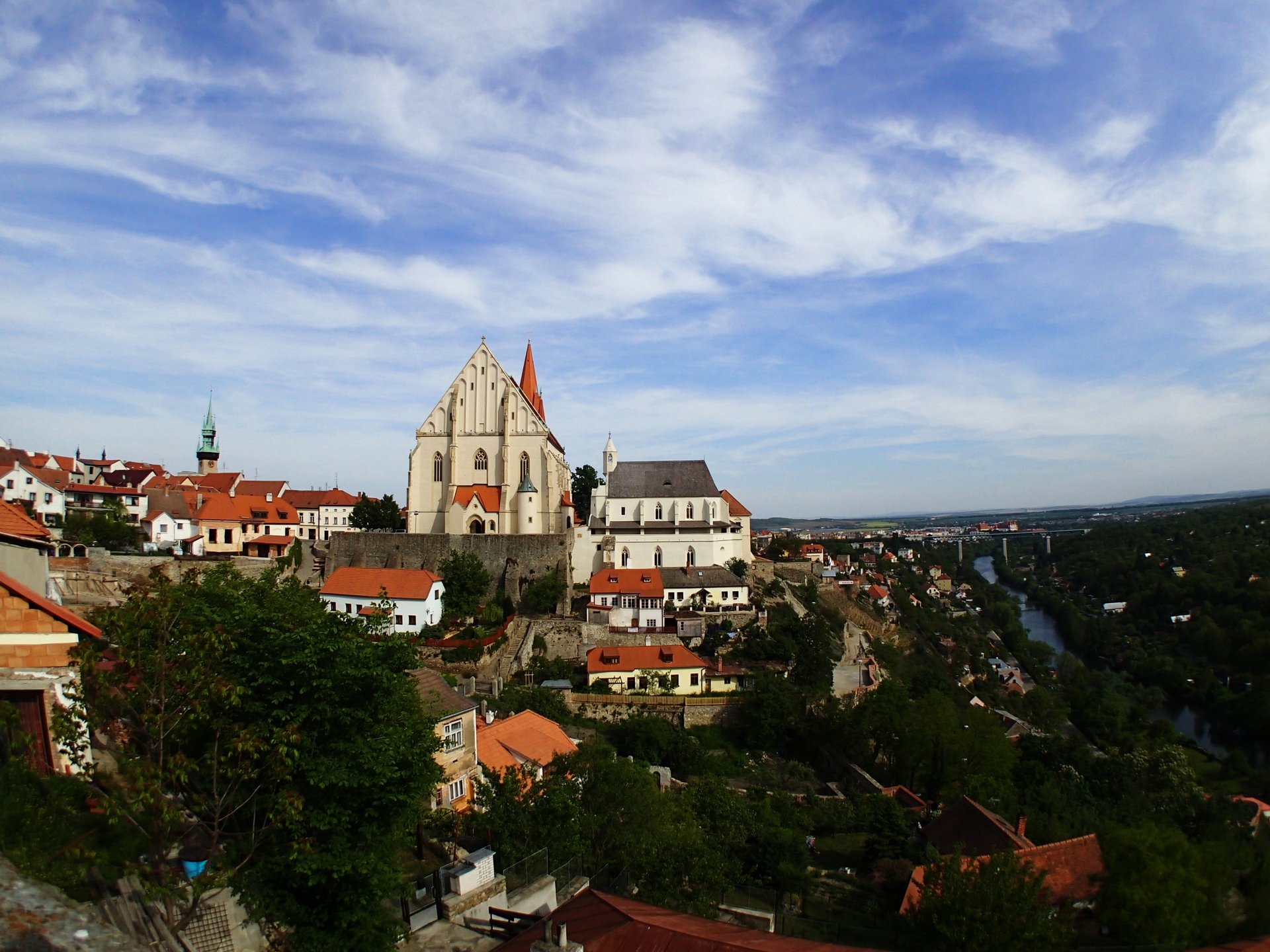 Ale abych jenom nenadával. Okolí místního hradu s rotundou (později pivovarem Hostan) je jakoby z jiného světa. Krásné výhledy na řeku Dyji, původní (famózně stavebně chaotické!) staré město v úzkém u hlubokém údolí mezi hradem a katedrálou. Tady mne bavilo toulání městem a kochání se vší tou nádherou kolem. Ostatně monumentální železniční most do Rakouska je přirozenou ikonou města a tady patří rozhodně lépe. Nově posázené vinné stráně pod chrámem pak dává tušit Mělník. Chybí tady snad jen soutok dvou velkých řek. Ale zase tady mají přehradu s nádhernou vilou hrázného.