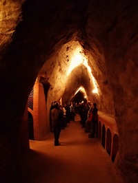 Pískovcové sklepy jsou navíc konstruovány jinak. Klenba není kulatá, ale gotická. Sklepy jsou tak na svou šířku mnohonásobně vyšší. A pocit pobytu v jeskyni je zcela oprávněný. Jednodušší je v pískovci i budování, takže sklepy jsou delší a mnohdy i propojené. I proto mne překvapilo, když sommeliér řekl, že přejdeme do vedlejšího sklepa a místo očekávaného "zpětného chodu" jsme pokračovali dále do hloubi. A později pak vystoupili zpátky na povrch úplně jiným sklepem!