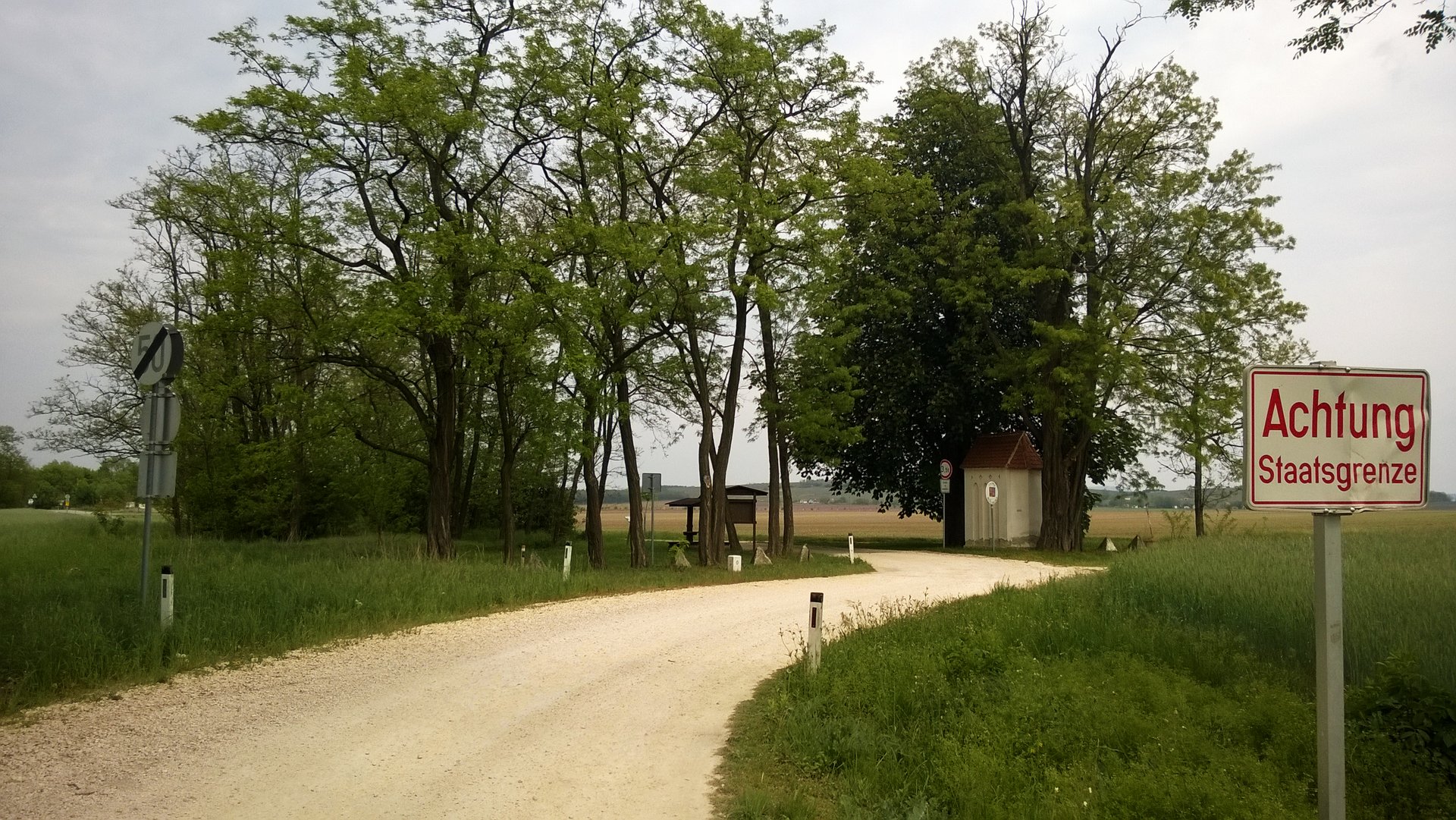 Hezky, bloudím! Hnedka za Jaroslavicemi mezi rybníky. Aha, tady neradno se spoléhat na cyklistické značení! Nicméně cesta polem/nepolem z Hrádku do totálně rozbitých Dyjákovic mne baví. Stále mírně zvlněná krajina, ale tady příjemně posetá sklípky. Drnholec odtud není zase tak daleko. Jímá mne nostalgie.